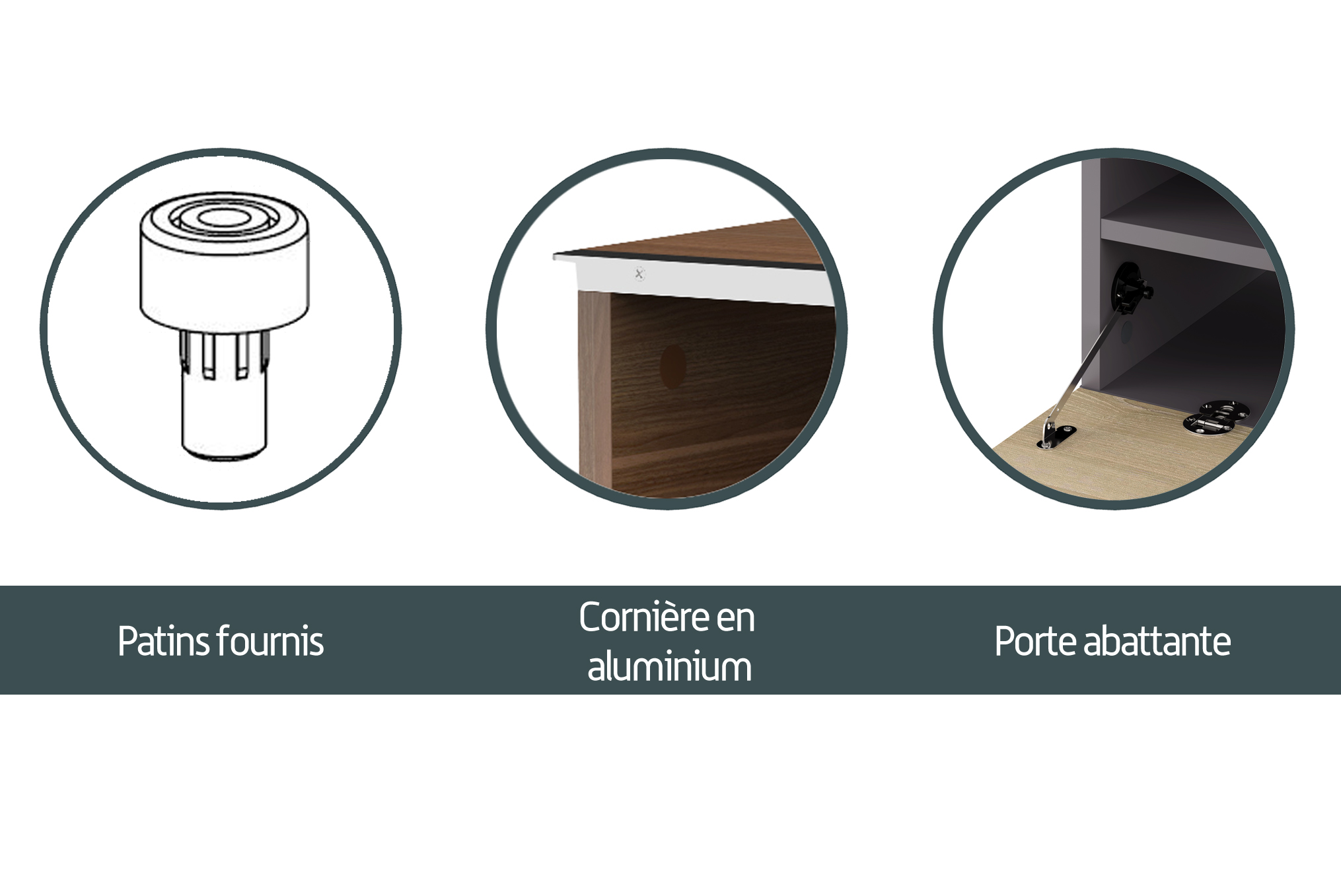 - Des patins sont fournis avec le meuble.
