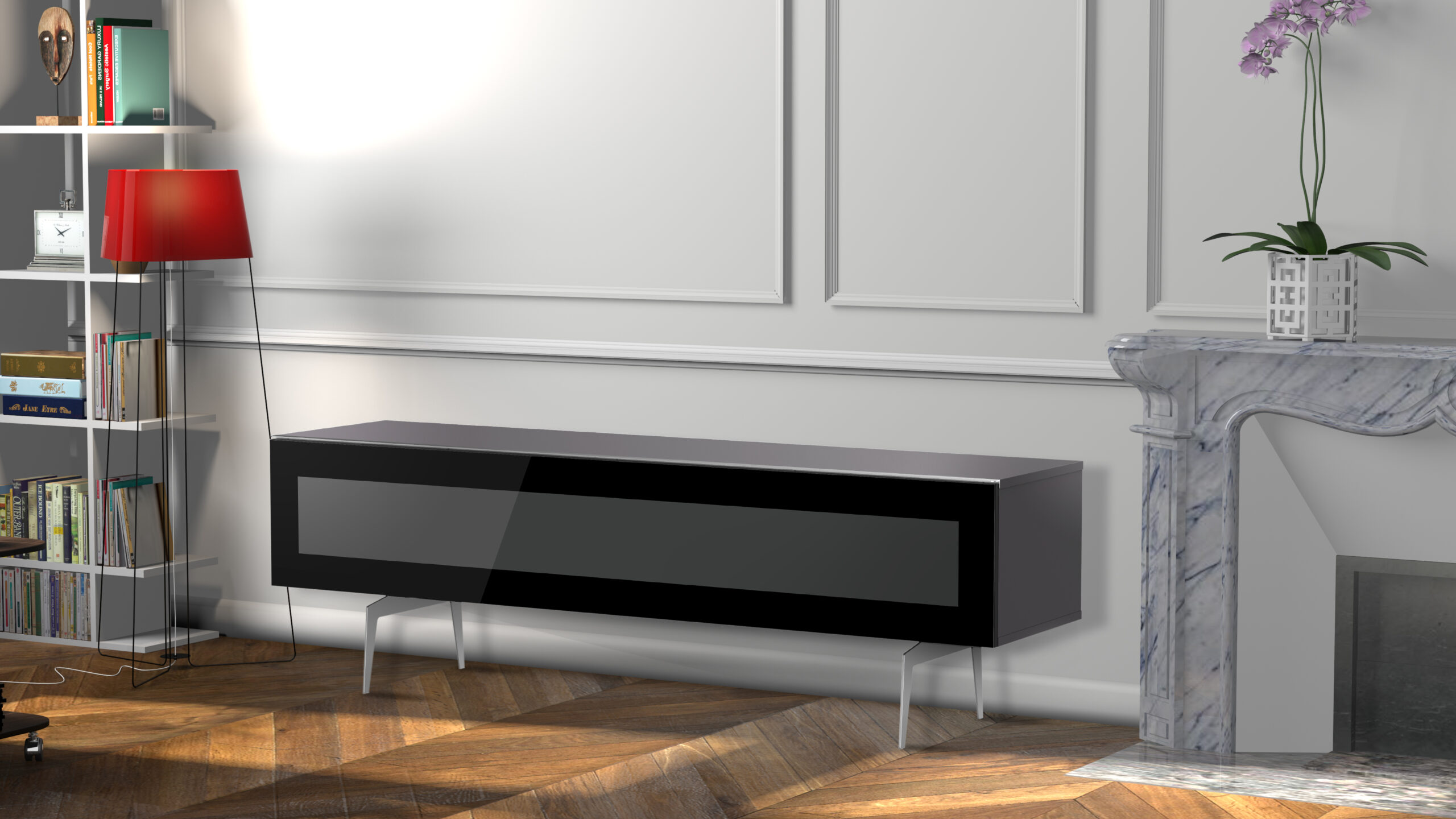 PORTE TECHNIQUE VERRE INFRAROUGE POUR MEUBLE TV LARGEUR 160 CM BLACK GLASS – Le design au service de la technologie