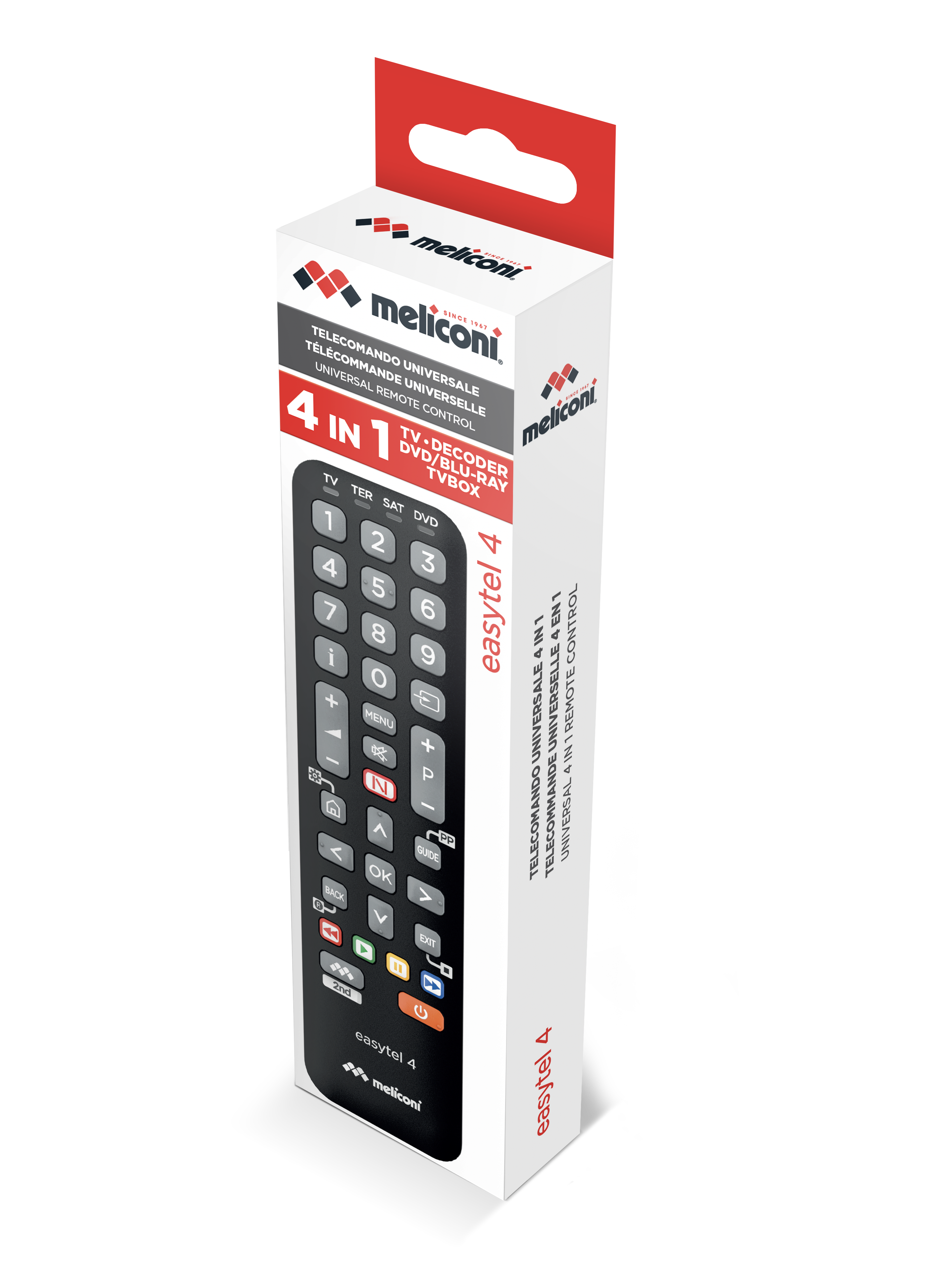 Télécommande UNIVERSELLE pour 4 appareils au choix : TV, TNT, SAT, TV ADSL, CÂBLE, DVD, VIDÉO, HIFI & AUX