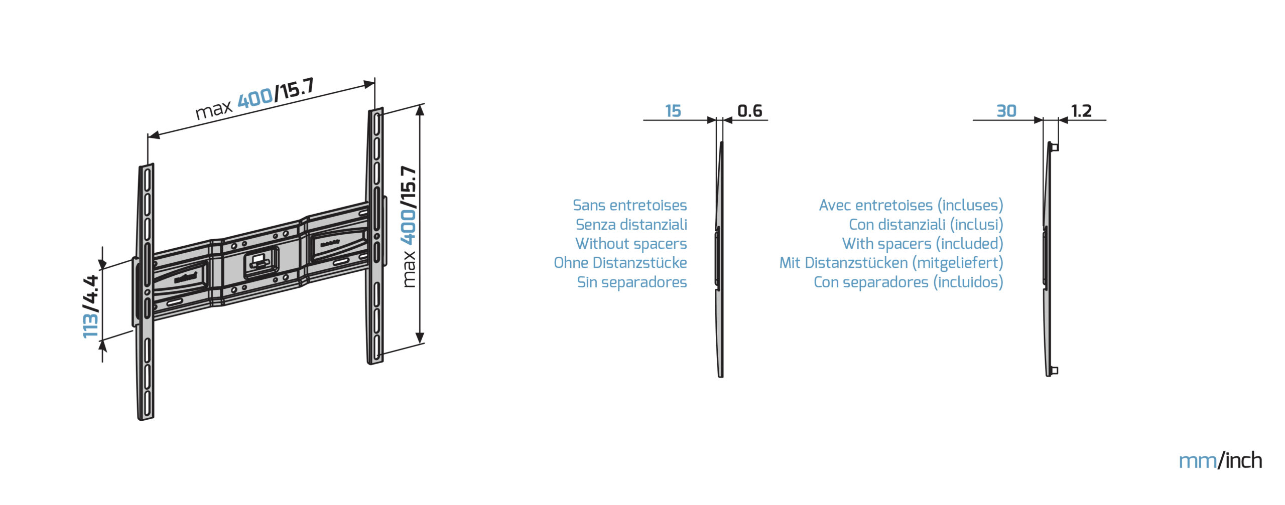 Support ultra-mince : distance entre le mur et la TV de 1,5 cm