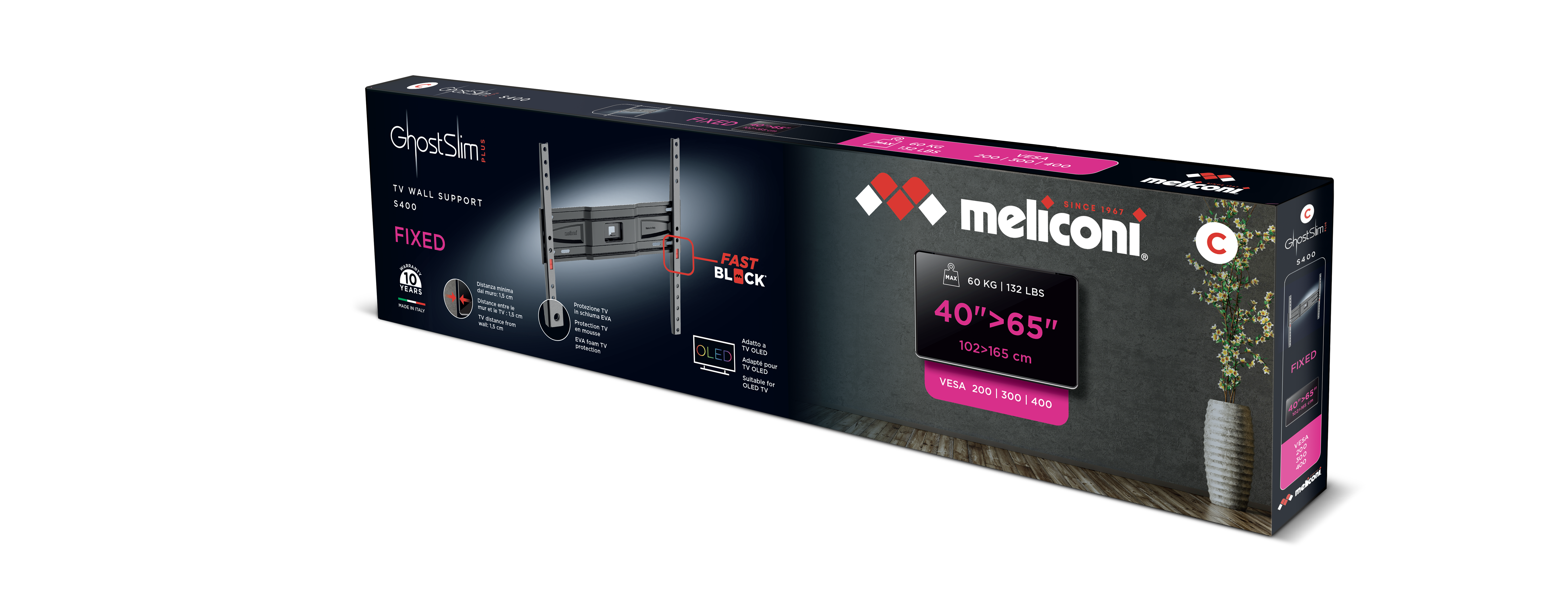 Fonction Fastblock : Système innovant de verrouillage du téléviseur : facile, sûr et rapide. Installez votre TV sur le support en seulement quelques étapes : vissez les 2 crémaillères à l’arrière de ce dernier puis clipsez l’ensemble sur la platine. Un “click” de chaque crémaillère confirmera que votre téléviseur est correctement positionné.
