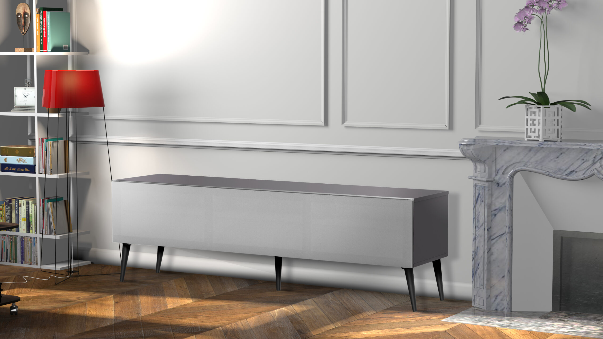 MEUBLE TV LARGEUR 160 CM AVEC PORTE EN TISSU ACOUSTIQUE ET INFRAROUGE – Le design au service de la technologie