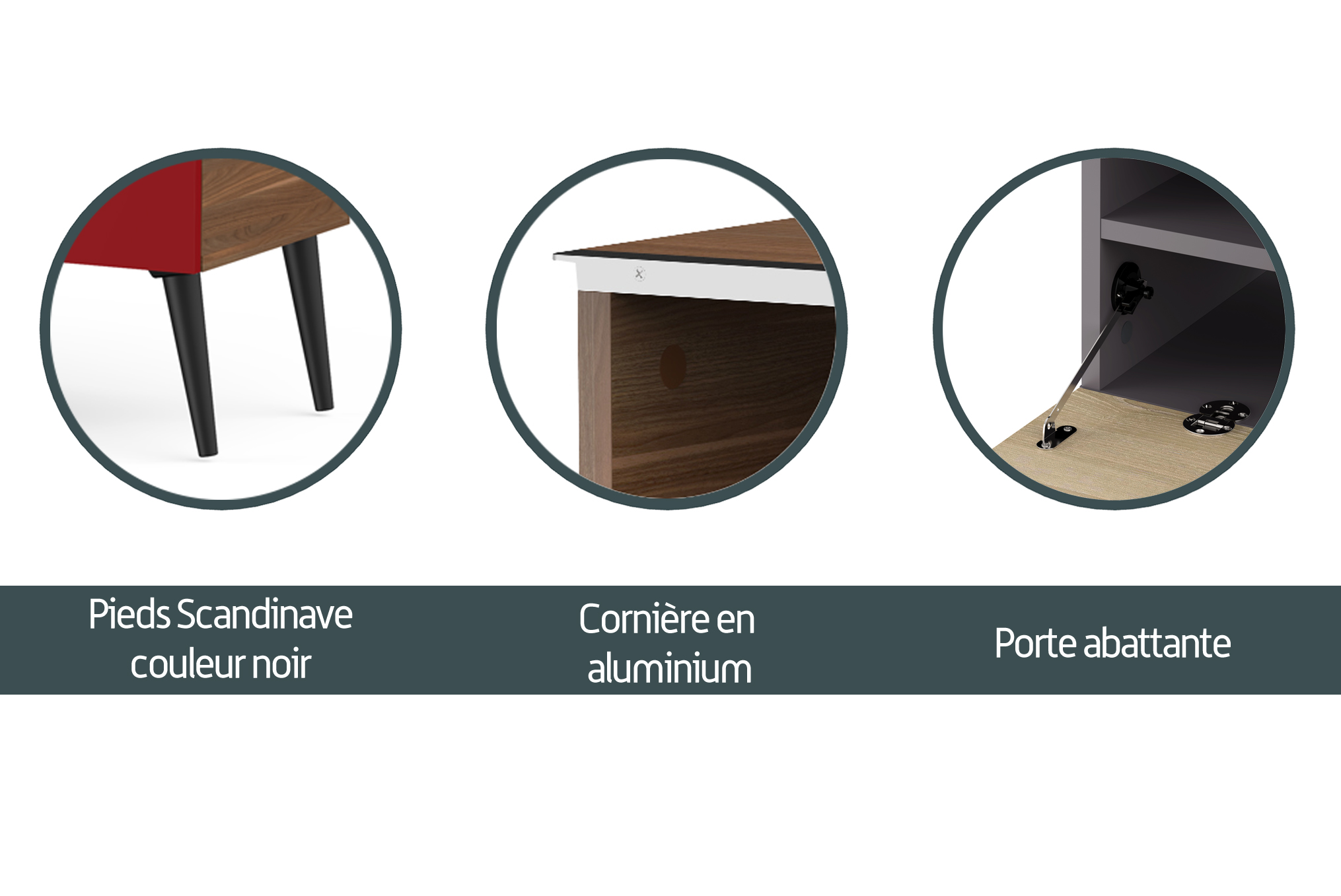 - Pour compléter votre meuble, deux accessoires permettant la fixation de votre TV et la gestion des câbles sont disponibles.